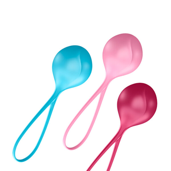 Satisfyer Balls - Progresywne kulki gejszy z gładkiego silikonu.Kulki w całości zostały wykonane z całkowicie bezpiecznegodla ciała silikonu medycznego, w 100% wodoodpornego.Zestaw został stworzony z trzech kulek o różnej wadze i wielkości.Są to trzy stopnie Twojego treningu. Skuteczne ćwiczenia mięśniKegla pomagają w poprawie stanu zdrowia (np. przy nietrzymaniumoczu), wzmacnia mięśnie pochwy, jednocześnie przynoszączwiększoną satysfakcję seksualną.Satisfyer balls są idealne:- do codziennych ćwiczeń,- dla zachowania kobiecego zdrowia,- ułatwia powrót do sprawności sprzed porodu,- zwiększą satysfakcję ze współżycia,- wodoodporne,- w całości wykonane z miękkiego silikonu,- materiał bezpieczny dla ciała i przyjazny dla środowiska,- trzy poziomy ciężkości kulek,- efektowny i bezpieczny trening mięśni dna miednicy,- silikonowy sznureczek ułatwia wyjmowanie kulek,- zapakowane w eleganckie pudełeczko,- cudowny prezent dla każdej kobiety,- produkt najwyższej jakości.Waga:niebieska - 61,9 gróżowa - 82,1 gfuksja - 97,9 gśrednica: 3,8 cmdługość całkowita: 12,6 cm