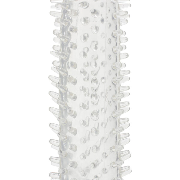 Elastyczna nakładka na penisa z licznymi wypustkami stworzonymi specjalnie po to, aby zapewnić jak największą przyjemność partnerce. Dzięki uciskowi wywieranemu na penisa skutecznie wydłuża czas trwania stosunku. Idealnie nadaje się również na wibrator lub palce. Nasadka na penisa z mnóstwem wypustek, które podrażniają do nieprzytomności strefy erogenne kobiet. Nakładka jest wykonana z bardzo przyjemnego w dotyku żelu. Jest bardzo elastyczna i wytrzymała. Cechy: - długość całkowita 11,5 cm - średnica 1,9 cm - rozciągliwa- kolor przeźroczysta- wykonano z materiału żelowego TPR Sex shopStymulatory łechtaczki