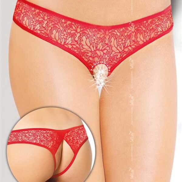 Softline - G-String 2446 red S/M. Czerwone figi z otwartym kroczem.