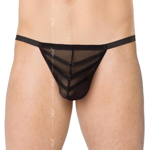 Softline - Mens Thong 4527 Black O/S. Prześwitujące stringi męskie czarne