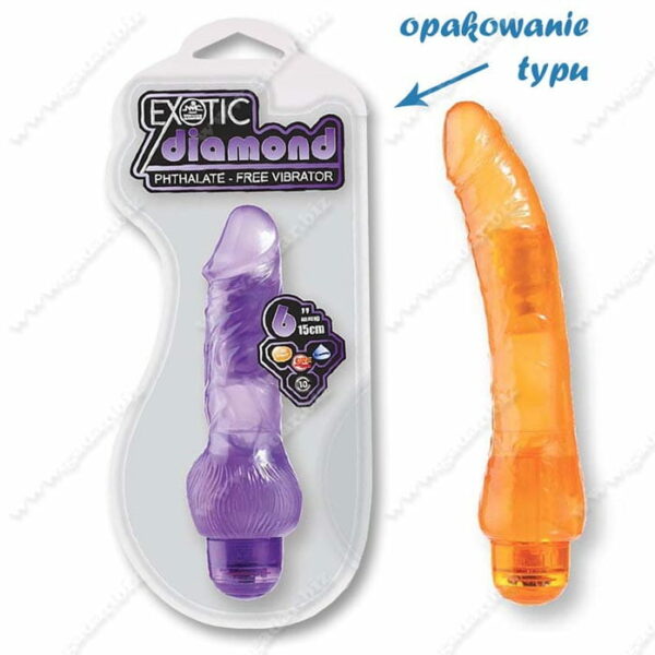 NMC - Exotic Diamond Vibrator Orange 9" to miękki wibrator żelowy o pomarańczowym kolorze. Posiada zarysowaną główkę i mocno wyczuwalne żyły. Wyposażony w 10 trybów wibracjioraz oświetlenie ledowe.NMC - Exotic Diamond Vibrator Orange 9" :- elastyczny,- giętki,- miękki,- o pomarańczowym odcieniu- realistyczny kształt,- wyczuwalne żyły,- bezpieczny dla ciałaWymiary:długość całkowita ok 22,5 cm.Kolor:pomarańczowyMateriał:miękki materiał żelowyZasilanie:dwie baterie AA