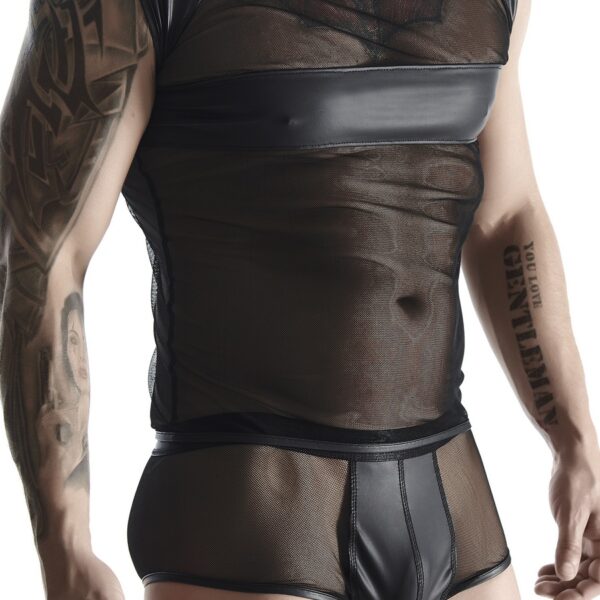 Regnes Fetish Planet - TSH005 Black L to czarna koszulka z elastycznej i miłej w dotyku siateczki.Szeroki kaptur, pas na piersi oraz ramiona wykonane z ekoskóry.Materiał: 92% polyamide / 8% elastaneRegnes Fetish Planet - TSH005 Black L:- Sygnowane firmą RFP- Wysokiej jakości elastyczny materiał- Unikalny design- Koszulka z kapturem- Wzmacniające przeszycia- Rozmiar L- Wetlook i siateczka- kolor czarnyWzrost: 184 cmKlatka Piersiowa: 103-107 cmTalia: 88-92 cmBiodra: 98-102 cmRFP Regnes Fetish Planet to pasja, kreatywność, oryginalność...To otwarcie na nowe doznania i bagaż zaskakujących i zapadających w pamięć momentów.Marka kieruje swoje produkty do osób ceniących sobie modę, seksowną bieliznę, odzież clubwear, a także mających jasno określone upodobania fetish. Mężczyzn kreatywnych, ciekawych,lubiących eksperymentować, świadomych swoich potrzeb. Poszukujących nowych doznań, inspiracji. Oczekujących wysokiej jakości produktu. Wygodnego, trwałego i wyróżniającego się niecodziennym wzornictwem.Produkty oznaczone logo RFP Regnes Fetish Planet pięknie wyglądają, są wygodne i trwałe. Podnoszą one temperaturę zabaw, a jednocześnie pozwalają na inspirujące eksperymenty. Majtki z rozwiązaniem BigBossEFFECT, koszulki z dostępem do piersi, zestawy „soft bondage” z gumek, majtki z otwartym tyłem, otwarte kieszonki w szortach...Te i inne rozwiązania zostaną docenione i z pewnością zagwarantują miłe doznania.