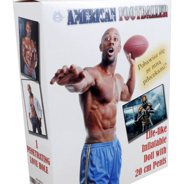 Boss Of Toys - American Footballer Male Doll:- Przepiękne ciało modela- penis 20 cm- Otwór analny- Nadrukowana twarz- Pozycja stojąca (165 cm)