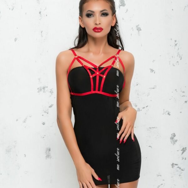 Me Seduce - Harness 1 Red S/M. Czerwony harness ze złotymi nitami