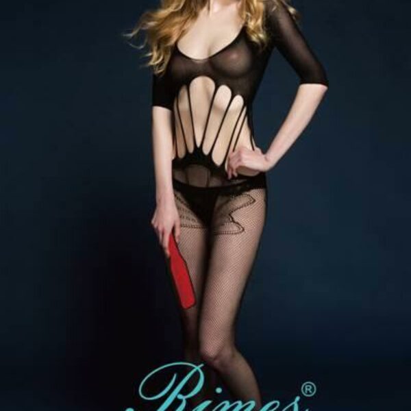 Rimes - 7053 Bodystocking. Czarny bodystocking z zaczepnym wzorem