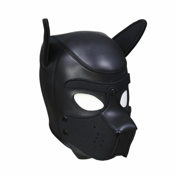 Maska na głowę psa jest miękka i elastyczna. Bez suwaków i kłopotów ze sznurkami do zapięcia. Głowa jest wykonana z czarnego neoprenu. Możesz zdejmować kaganiec. Ponieważ maska jest wykonana z neoprenu, dobrze zamyka się wokół głowy, nie jest nigdy za luźna. Jest wodoodporna i idealna na podróże. Uszy można lekko ugiąć, aby określić nastrój. Kolejną zaletą tej maski jest to, że możesz wypuścić język. A usta są dostępne bez usuwania pyska. Możesz więc zdobyć wszelkiego rodzaju nagrody bez konieczności zdejmowania kagańca. Ta maska psa jest tak łatwa do czyszczenia, że możesz zabrudzić swoje gry tak, jak chcesz.