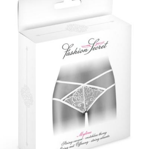 Francuska Biała bielizna stringi model Mylene.- jeden rozmiar,- piękne wykończenie,- delikatny materiał,- koronka wykończona delikatnym gładkim materiałem. Materiał95% Polyamide5% Spandex