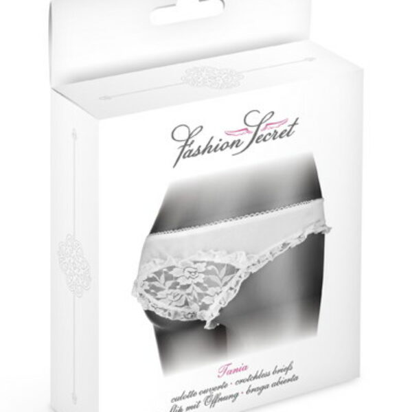 Białe Figi z Koronką z Tyłu.- figi z ozdobną koronka na pośladkach,- lekko prześwitująca koronka,- bielizna z klasycznym zakrytym przodem i lekką falbanką,- delikatny materiał przyjazny dla ciała,- wyróżniający się wzór,- jeden rozmiar dopasowujący się do ciała.