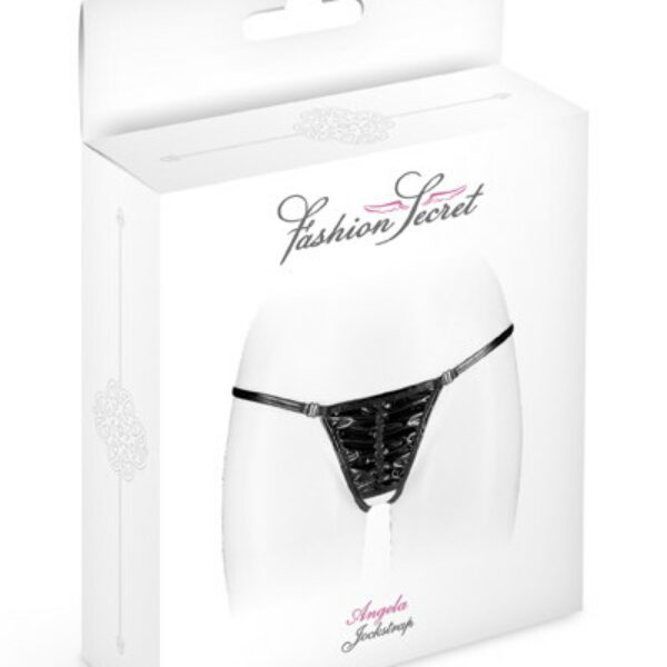 Francuska Czarna Bielizna model Angela.- jeden rozmiar,- odważny model stringów,- materiał imitujący latex,- piękne wykończenie,- delikatny materiał.