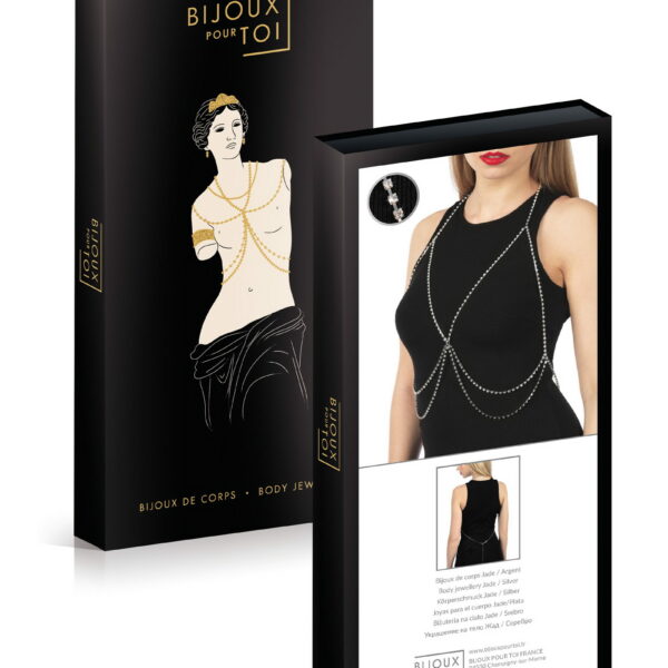Bijoux Pour Toi Bijou de Buste Jade. Naszyjnik w kolorze Srebrnym z Diamentami Podkreślający Piersi.