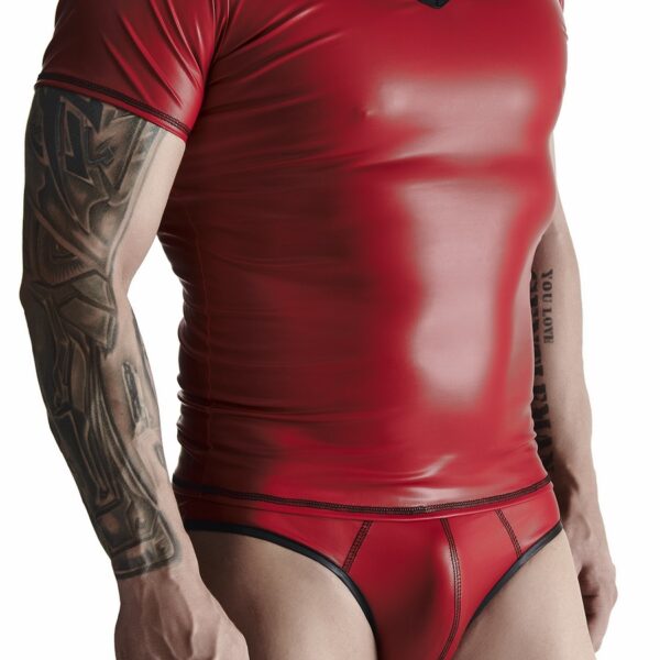 RFP regnes fetish planet to pasja, kreatywność, oryginalność... To otwarcie na nowe doznania i bagaż zaskakujących i zapadających w pamięć momentów. Marka kieruje swoje produkty do osób ceniących sobie modę, seksowną bieliznę, odzież clubwear, a także mających jasno określone upodobania fetish. Mężczyzn kreatywnych, ciekawych, lubiących eksperymentować, świadomych swoich potrzeb. Poszukujących nowych doznań, inspiracji. Oczekujących wysokiej jakości produktu. Wygodnego, trwałego i wyróżniającego się niecodziennym wzornictwem. Produkty oznaczone logo RFP regnes fetish planet pięknie wyglądają, są wygodne i trwałe. Podnoszą one temperaturę zabaw, a jednocześnie pozwalają na inspirujące eksperymenty. Majtki z rozwiązaniem BigBossEFFECT, koszulki z dostępem do piersi, zestawy "soft bondage" z gumek, majtki z otwartym tyłem, otwarte kieszonki w szortach... Te i inne rozwiązania zostaną docenione i z pewnością zagwarantują miłe doznania. Opis produktu: klasyczny tshirt w serek / elstyczny i miły w dotyku materiał / wzmacniające przeszycia; 95% polyester / 5% elastane