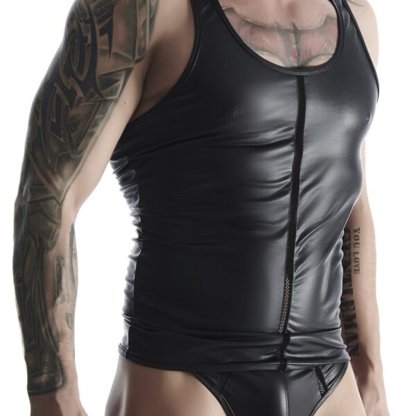 RFP regnes fetish planet to pasja, kreatywność, oryginalność... To otwarcie na nowe doznania i bagaż zaskakujących i zapadających w pamięć momentów. Marka kieruje swoje produkty do osób ceniących sobie modę, seksowną bieliznę, odzież clubwear, a także mających jasno określone upodobania fetish. Mężczyzn kreatywnych, ciekawych, lubiących eksperymentować, świadomych swoich potrzeb. Poszukujących nowych doznań, inspiracji. Oczekujących wysokiej jakości produktu. Wygodnego, trwałego i wyróżniającego się niecodziennym wzornictwem. Produkty oznaczone logo RFP regnes fetish planet pięknie wyglądają, są wygodne i trwałe. Podnoszą one temperaturę zabaw, a jednocześnie pozwalają na inspirujące eksperymenty. Majtki z rozwiązaniem BigBossEFFECT, koszulki z dostępem do piersi, zestawy "soft bondage" z gumek, majtki z otwartym tyłem, otwarte kieszonki w szortach... Te i inne rozwiązania zostaną docenione i z pewnością zagwarantują miłe doznania. Opis produktu: koszulka bez ramiączek / elastyczny i miły w dotyku materiał / z przodu ozdobna, pionowa elastyczna taśma z krateczką / wzmacniające przeszycia; 95% polyester / 5% elastane
