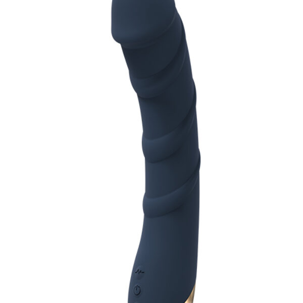 Dream Toys - Goddess Collection Atlas. Ekskluzywny wibrator z aksamitnego silikonu. Granatowo złoty, idealny na prezent.