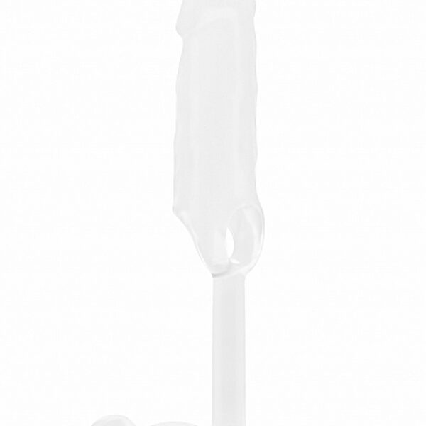 Czy pragniesz, by Twój członek był parę centymetrów dłuższy, zapewniał Ci uczucie komfortu, a jednocześnie lubisz także seks analny?Specjalnie pogrubiana nakładka jest zaprojektowana, aby dodać 2,5 cm do długości penisa i aż 1 cm do jego obwodu. Stworzona, by zagwarantować optymalną stymulację, natomiast pas utrzymuje ją w miejscu. Będzie się utrzymywać niezależnie od ruchów, które wykonujesz!Nakładka ma także korek analny. Tekstura materiału i jego forma ułatwiają jego wsuwanie.Zaleca się stosowanie pewnej ilości lubrykantu.Lekko zakrzywiona końcówka delikatnie masuje punkt p, a jej ukształtowanie zapewni wspaniałą stymulację.Jest wyprodukowana z miękkich elastomerów termoplastycznych i dostępna w trzech kolorach: czarnym, szarym i przeźroczystym.Rozmiar penisa: 9 cm - 19 cm