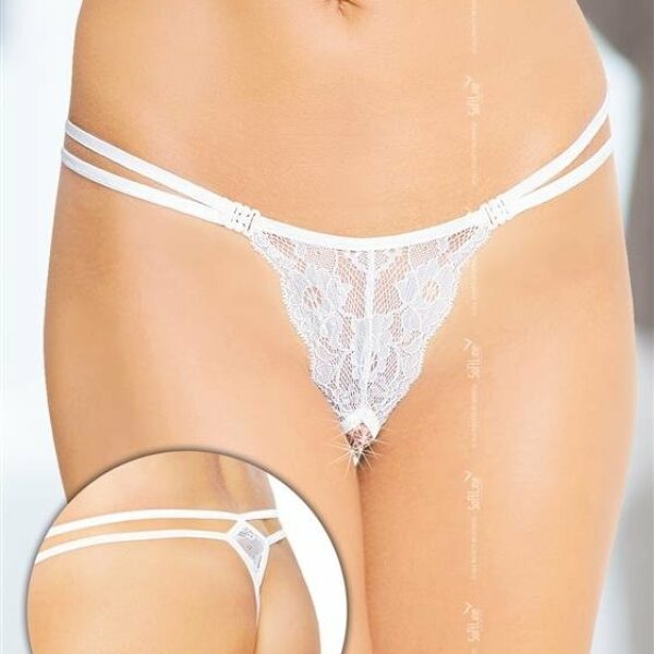 SoftLine - G-String 2444 White S-L. Stringi z koronki z wygodnymi zapięciami z przodu.