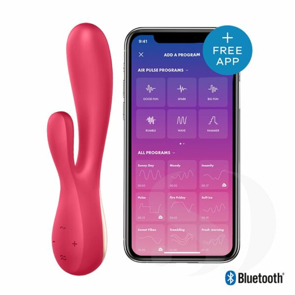 Satisfyer - Mono Flex Red Berry. Nowoczesny wibrator króliczek sterowany aplikacją. 2 silniki. Punkt-G. USB