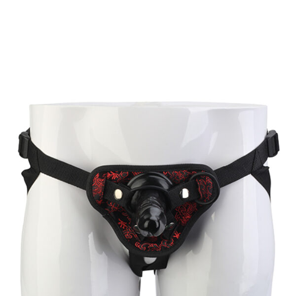 Blaze - Deluxe Strap On Dildo. Realistyczne dildo i czarno czerwony, stylowy strap on. Super dopasowane do ciała i wytrzymałe.