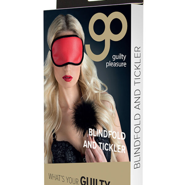 Guilty Pleasure - Two-Toned Blindfold Red. Czerwona skóropodobna opaska, z piórkiem do głaskania. Wygodna dobrze dopasowuje się do twarzy.