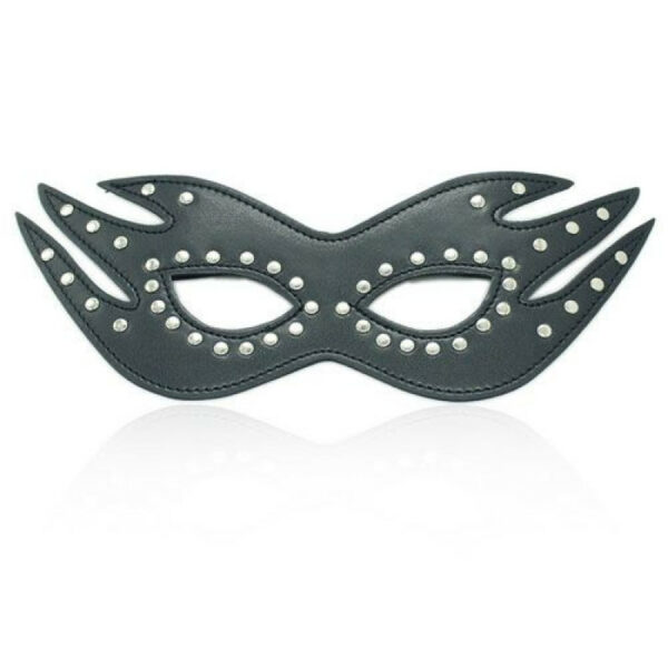 Toyz 4 Lovers - Face Mask. Czarna maska podkreślająca kształt twarzy i oczy. Ćwieki dodają drapieżności miękkiej i wygodnej skórze.