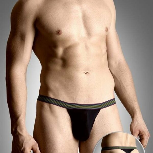 Softline - Mens thongs 4496. Czarne stringi męskie z tęczową gumką. XL