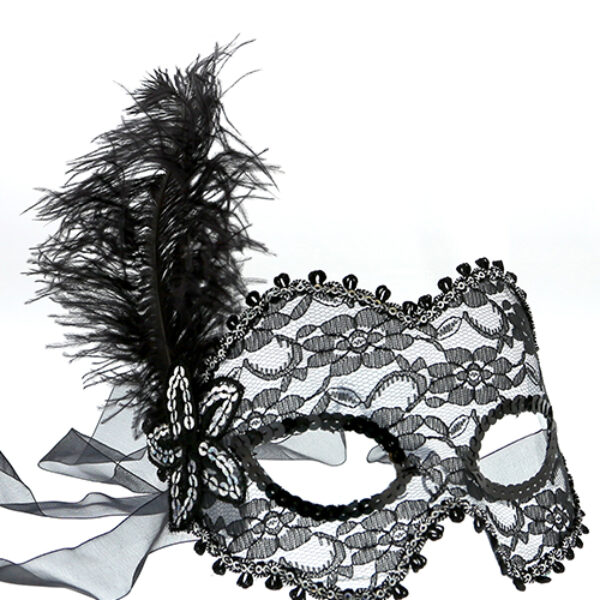 Guilty Pleasure - Venetian Eye Mask. Maska wenecka z koronki z piórkiem.