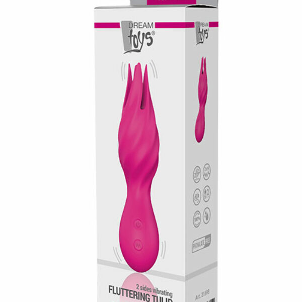 Dream Toys - Fluttering Tulip. Wibrator 2w1. Dwie końcówki stymulujące, klasyczne wibracje i stymulacja oralna. Unikatowy wzór.