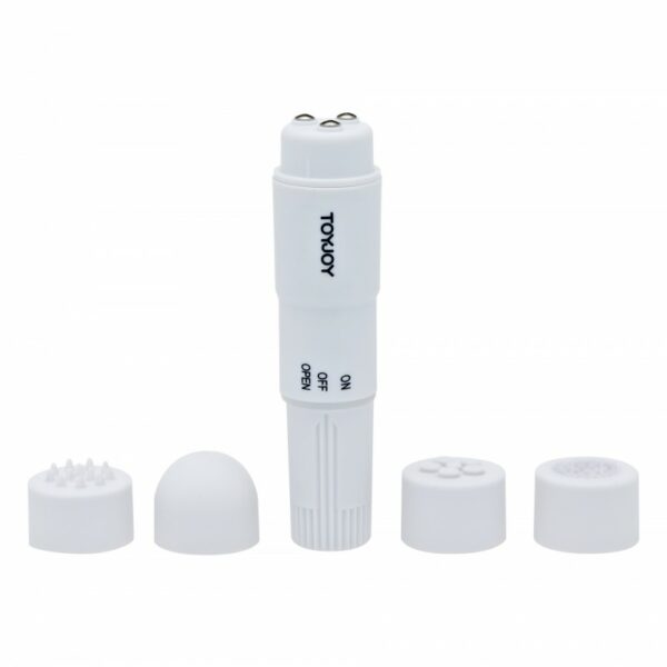 ToyJoy - Pocket Rocket White. Biały mini wibrator z 4 wymiennymi końcówkami stymulującymi!