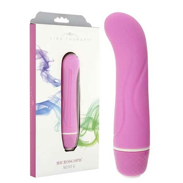 Nie wielki, silikonowy wibrator w ślicznym, różowym kolorze. Został wyposażony w kilka programów, dzięki którym każda kobieta znajdzie odpowiedni dla siebie.Wibrator posiada trzy programy pulsacji i trzy programy wibracji, które możemy intensyfikować na trzech poziomach mocy.Dzięki lekko zagiętej główce, wibrator idealnie stymuluje punkt G i daje każdej kobiecie, jeszcze więcej rozkoszy. Microscopic Mini G:- delikatny i niewielki,- posiada kilka programów wibracji,- cichy i dyskretny,- stymuluje punkt G,- wykonany z silikonu medycznego,- delikatne wypustki na powierzchni,- wodoodporny,- szybko się nagrzewa,- wysoka jakość produktu,- energetyczny kolor.Wymiary:Długośc około 12 cmŚrednica około 2,5 cmMateriał:Wykonany z silikonu medycznego.Kolor:różowy.Zasilanie:Bateria 1 x AA.Vibe Therapy jest jednym z niekwestionowanychliderów na rynku zabawek erotycznych. Jego produkty wykonywane są z wysokiej jakości silikonu medycznego.