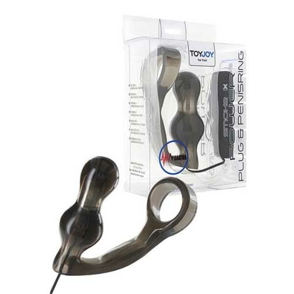 Toy Joy - Manpower Plug & Ring Vibr. Smoke -Wibrujący stymulator prostaty z ringiem