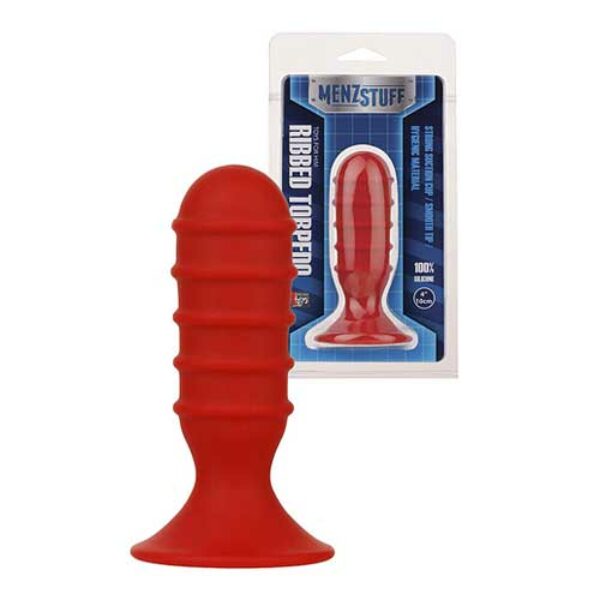 MenzStuff - Ribbed Torpedo Dong 4Inch Red - 100% silikon, 10 cm.