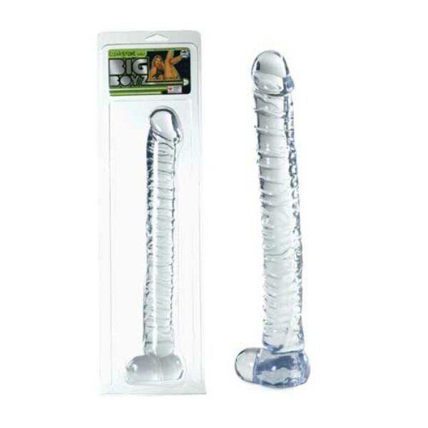 Big Boyz Clear to duże dildo o realistycznym kształcie. Jego grube żyły zapewnią Ci niezwykle przyjemne doznania.Big Boyz Clear Dong to:- realistyczny kształt,- szczególnie żylasty,- posiada jądra,- odporny na wodę, - elastyczny, miękki materiał.Materiał:- elastyczny, żelowy materiał wysokiej jakości.Wymiary:- długość 35,6 cm.- średnica ok. 4 cm.Kolor:- bezbarwny.