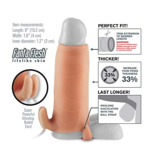 Duo Clit Climax Her to super miękka nakładka pogrubiająca penisa. Wykonana jest w sposób umożliwiający dostosowanie jej długości, posiada pierścień przedłużający erekcję oraz dwie wypustki stymulujące łechtaczkę. Wypustki wypełnia się mini pociskami wibrującymi, dzięki czemu stymulacja jest jeszcze przyjemniejsza.Pipedream - Fantasy X- Tensions - Duo Clit Climax- Her:- w dotyku jak ludzka skora,- elastyczny materiał,- ring na jądra,- dwie wypustki stymulujące łechtaczkę,- dwa mini pociski wibrujące,- łatwe sterowanie,- wodoodporne,- lubrykant i płyn do czyszczenia zabawek erotycznych w prezencie.Wymiary:średnica wewnętrzna bez rozciągania 2,5 cm.długość 15,5 cm. do regulacji.Kolor:naturalny.Materiał:TPE, ABS, Fanta Flesh.Zasilanie:dwie baterie AAA, do zakupienia osobno.Nakładki z serii Fantasy X-tensions to propozycja dla mężczyzn, którzy chcą spróbować czegoś nowego i wejść w nowy wymiar rozkoszy.