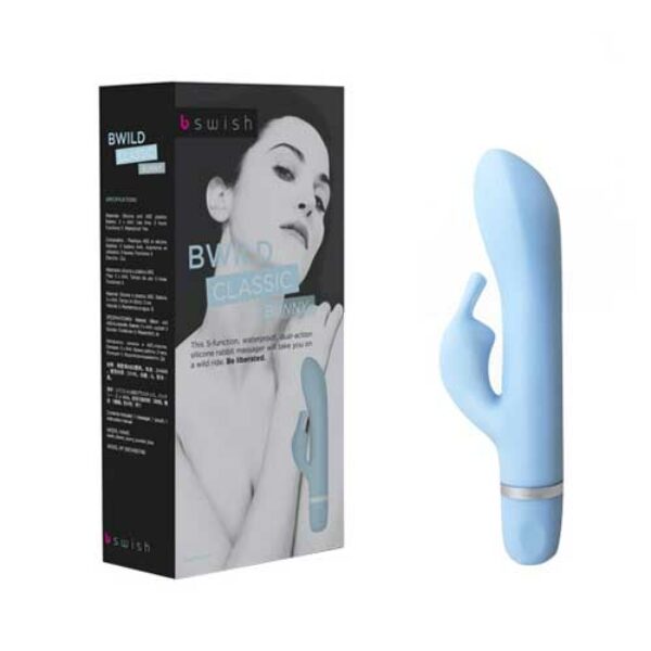B Swish- BWild Classic Bunny, to wibrator który zabierze Cię na wyższy poziom rozkoszy. Składa się z wibratora oraz stymulatora łechtaczki, który swym kształtem przypomina kultowego już w tej branży króliczka. B Swish-B Wild Deluxe Bunny wyposażony jest w pięć funkcji wibracji. Model posiada dwa silniczki, jeden w głównej części, a drugi w stymulatorze łechtaczki. Unikatowo wyprofilowana główka o lekko zagiętym kształcie, jest dodatkowo lekko pogrubiona, co świetnie stymuluje punkt G i trafia w najwrażliwsze miejsca kobiety. Stymulator w trakcie wibracji wprawia w ruch królicze uszka, które pieszczą łechtaczkę. Wibrator pokryty jest niezwykle delikatnym i bardzo przyjemnym w dotyku silikonem, wolnym od szkodliwych ftalanów. Materiał należy do grupy materiałów medycznych, co minimalizuje ryzyko podrażnień. Dodatkowym atutem tego modelu jest wodoodporność, co ma duży wpływ na higienę użytkowania. B Swish-B Wild Deluxe Bunny jest idealny dla tych kobiet, które potrzebują stymulacji łechtaczki, aby osiągnąć szczyt rozkoszy. Skuś się, a nie pożałujesz. Maksimum rozkoszy, za niezwykle przystępną cenę! B Swish - BWild Classic Bunny: - sterowanie jednym przyciskiem, - ciekawy design, - posiada pięć funkcji wibracji, - stymulator łechtaczki, - dwa silniczki, - stymulacja punktu G, - wodoodporny, - wykonany z materiałów medycznych, - szybko się ogrzewa, - wysoka jakość produktu, - estetyczne opakowanie. Wymiary: długość całkowita 15 cm. średnica 2,5 cm. Materiał: Wykonany z bezpiecznego silikonu medycznego. Kolor: błękitny. Zasilanie: Baterie 2 x AAA (do kupienia oddzielnie). Czas pracy: 3 godziny B Swish, to marka wyjątkowa. Jej produkty są idealnym połączeniem klasyki i nowoczesności. Te produkty zaspakajają oczekiwania najbardziej wymagających klientów. Każda z zabawek jest wykonana z niezwykłą dokładnością i starannością. Zarówno linia, jak i kolor każdego modelu przyciągają wzrok. Akcesoria pokryte są, niezwykle delikatnym w dotyku i bezpiecznym w użyciu materiałem. B Swish, to nowy poziom rozkoszy, w niezwykle przystępnej cenie.SexshopSexshop Kraków