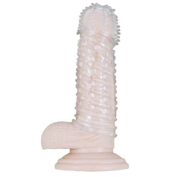 Przezroczysta nakładka na penisa z licznymi wypustkami, większymi i mniejszymi. Wykonana z niezwykle elastycznego materiału, który idealniedopasowuje się do ciała. Wypustki drażniąścianki pochwy i pomagają kobiecie w dojściu na sam szczyt.Boss Of Toys - Iron Man:- na członek,- na wibrator,- wypustki extra stymulujące,- rozciągliwa,- idealnie przylegająca,- pasuje na większość rozmiarów członka i wibratora.Wymiary:długość bez rozciągania ok. 15 cm.średnica bez rozciągania ok. 2,8 cm.Kolor:transparentny.Materiał:bardzo elastyczny, bezpieczny dla ciała.
