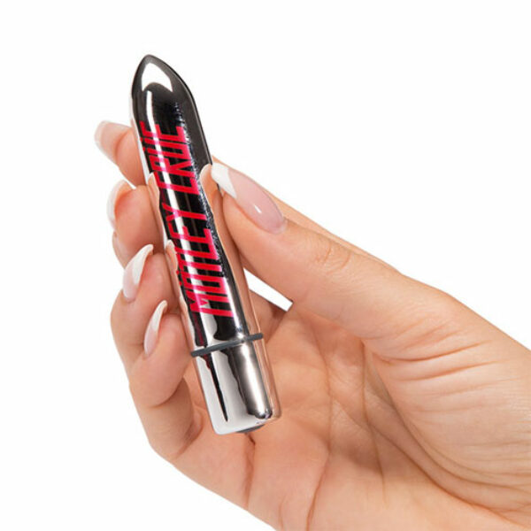 Sex, drugs and rock'n'roll !!!Fani kapeli Mötley Crüe nigdy nie zapomną o swoich idolach. Teraz dzięki wibratorowi z logo zespołu,nawet w najintymniejszych chwilach...Ten mini wibrator posiada aż 10 różnych trybów wibracji,które zaspokoją Twoje pragnienia. Produkt jestw 100% wodoodporny, co pozwoli Ci na korzystaniez niego nawet pod prysznicem.Mötley Crüe - Too Fast For Love:- 10 trybów wibracji,- 3 poziomy intensywności i 7 trybów pulsacji,- idealny do stymulowania łechtaczki,- niewielki, dyskretny,- 100% wodoodporny.Kolor:srebrny.Wymiary:długość ok. 9,3 cm.średnica ok. 1,8 cm.Materiał:trwały, dobrze przenosi wibracje.Zasilanie:jedna bateria AAA, do zakupienia osobno.