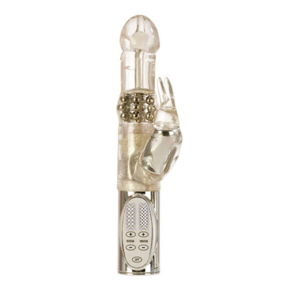 Experience new levels of intimate arousal, stimulation and orgasmic ecstasy with the Platinum Collection Jack Rabbit. The multi-speed, power-packed combo stimulator boasts 7vibration, pulsation and escalation functions and 6 rotation speeds, for an intensely pleasurable and memorable time. The vibe is made from smooth,soft TPE and has a transparent jelly shaft with rounded helmet tip and rotating metal pleasure beads, and a soft, curvy bunny shaped clitoral teaser. The easy push-button controls allow you to select from 6 independent rotation speeds and 7vibration, pulsation and escalation actions. The massager measures 5'' x 1.''/12.75cm x 3.75cm and is the perfect size to massage and stimulate sensitive sweet spots all over the body. The waterproof vibe is ideal for intimate playtime in the shower, bath or hot tub. To intensify the tingles and sensations, always use a quality lube with this toy. Clean with a toy cleaner spray, or soapy water, before and after each use.SexshopSexshop Kraków