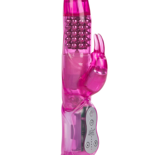 Explore your erogenous zones with the Advanced Waterproof Jack Rabbit. The multi-speed, power-packed vibe boasts 7vibration, pulsation and escalation functions and 6 rotation speeds, for intensified orgasmic pleasure and ultimate sensual satisfaction. The vibeis has a transparent jelly shaft with rounded tip, and a soft, curvy bunny shaped clitoral teaser. The push-button controls are easy to use and allow you to select from 6 independent rotation speeds of non-jamming synchronized beads and 7vibration, pulsation and escalation actions of flickering bunny ears. Auto on/off controls let you turn off until you?re ready to be turned on again. Use the rabbitmassager to stimulate pleasure spots all over the body, in or out of the water.SexshopSexshop Kraków