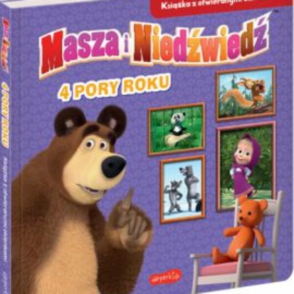 Masza, Niedźwiedź oraz ich leśni przyjaciele bawią się świetnie przez cały rok! Wiosną spacerują wśród drzew, latem spędzają czas nad stawem, jesienią biwakują w lesie, a zimą cieszą się fantastycznymi świątecznymi prezentami. Dołącz do swych ulubionych bohaterów z kreskówki Masza i Niedźwiedź - poszukaj postaci i zwierzaków ukrytych w otwieranych okienkach na każdej stronie tej książeczki! Mocny karton, z którego wykonana jest książka, wytrzyma długie godziny zabawy, okienka otwierają się łatwo, a dzięki zaokrąglonym rogom produkt jest bezpieczny nawet dla maluchów.
