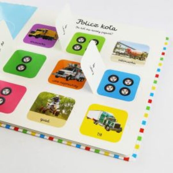 W tej książce Wasze dziecko pozna 100 pojazdów z całego świata: samochody osobowe, ciężarówki, śmigłowce, maszyny rolnicze i budowlane. Dzięki kilkudziesięciu otwieranym okienkom nauka będzie dla niego świetną zabawą.