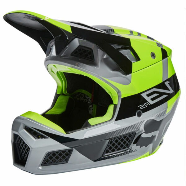 Fox V3 RS Riet to zaawansowany kask motocrossowy wyposażony w system MIPS™ (Multi-directional Impact Protection system), który naśladuje strukturę ochronną mózgu zmniejszając tym samym siłę rotacyjną powstałą podczas uderzenia w głowę pod kątem. Uderzenia te zdarzają się znacznie częściej podczas uprawiania sportów wyczynowych. Ponad to system MVRS™ (Magnetic Visor Release System) odpowiada za wypięcie się daszka w razie poważnego zagrożenia. Sam daszek mocowany jest przy pomocy magnesów a nie klasycznie na śrubach. We wnętrzu kasku znajduje się EPS Varizorb™ o podwójnej gęstości który świetnie absorbuje energię uderzenia oraz jest kompatybilny z awaryjnym systemem zdejmowania kasku Eject Helmet Removal®. Skorupa kasku V3 RS Riet wykonana jest w multikompozytowej technologii MCT łącząc w sobie wytrzymałe włókno węglowe i FRP. 4 rozmiary skorupy wraz z wcześniej wspomnianym EPSem gwarantują świetne dopasowanie do użytkownika. Osłona szczęki również wykonana jest z włókna węglowego dzięki czemu cały kask jest bardzo lekki i umożliwia komfortową jazdę. Wentylacja z meshowymi filtrami zapewnia idealny przepływ powietrza jednocześnie zapobiegając dostawaniu się drobinek piasku, ziemi i kurzu do wnętrza. Miękka, antybakteryjna i wypinana wyściółka X-Static® w pełni nadaje się do prania. Zapięcie kasku Double D (DD) gwarantuje bezpieczeństwo wysokiej klasy.