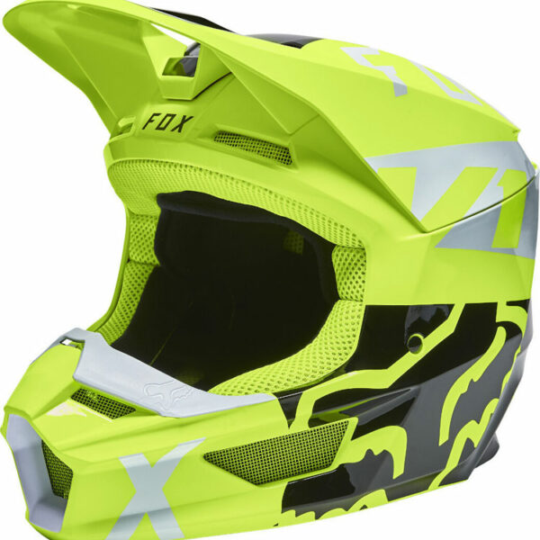 Fox V1 Skew to wydajny i bezpieczny kask do codziennej, off-roadowej jazdy. Wyposażony został w zaawansowany system ochrony MIPS™ (Multi-directional Impact Protection system), który naśladuje strukturę ochronną mózgu zmniejszając tym samym siłę rotacyjną powstałą podczas uderzenia w głowę pod kątem. Uderzenia te zdarzają się znacznie częściej podczas uprawiania sportów wyczynowych. Ponad to do mocowanego na magnesach daszku zastosowano system MVRS™ (Magnetic Visor Release System) który wypina go w razie poważnego zagrożenia, lecz utrzymuje go sztywno na miejscu podczas normalnego użytkowania. Skorupa wykonana jest ze wstrzykiwanego poliwęglanu cechującego się wysoką wytrzymałością mechaniczną. 6 rozmiarów skorupy oraz wewnętrzna i zewnętrzna powłoka EPS w 7 rozmiarach oferuje optymalny komfort podczas jazdy. Za wentylacje odpowiada 9 wlotów i 4 wyloty które umożliwiają odpowiednią cyrkulację powietrza i zarządzanie wilgocią wewnątrz kasku. Miękka, antybakteryjna i wypinana wyściółka w pełni nadaje się do prania. Zapięcie kasku Double D (DD) gwarantuje bezpieczeństwo wysokiej klasy. Kask spełnia wszelkie wymogi certyfikacji ECE 22.05 oraz DOT.