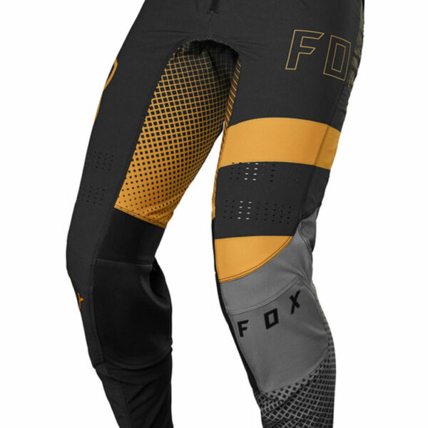 Fox Flexair Riet to innowacyjne spodnie przeznaczone do jazdy w terenie. Wykonane są z wytrzymałej i elastycznej tkaniny TruMotion która rozciąga się we wszystkich kierunkach gwarantując pełną swobodę ruchów. Spodnie wykorzystują konstrukcję Rider Attack Position™ (RAP) która ułatwia przyjęcie prawidłowej pozycji na motocyklu oraz znacznie zwiększa komfort jazdy. Dwuwarstwowy system kolanowy z licowanej skóry chroni zewnętrzny i wewnętrzny materiał przed przetarciami i przebiciami. Dodatkowo obszar krocza wzmocniony został poliestrową tkaniną 600D zwiększającą trwałość bez utraty mobilności i wydajności. W celu utrzymania odpowiedniej temperatury w spodniach strategicznie rozmieszczono laserowo wycinane otwory wentylacyjne które gwarantują odpowiednią cyrkulację powietrza. Idealny, przylegający krój pozwala na swobodną i komfortową jazdę nie krępując jednocześnie ruchów.
