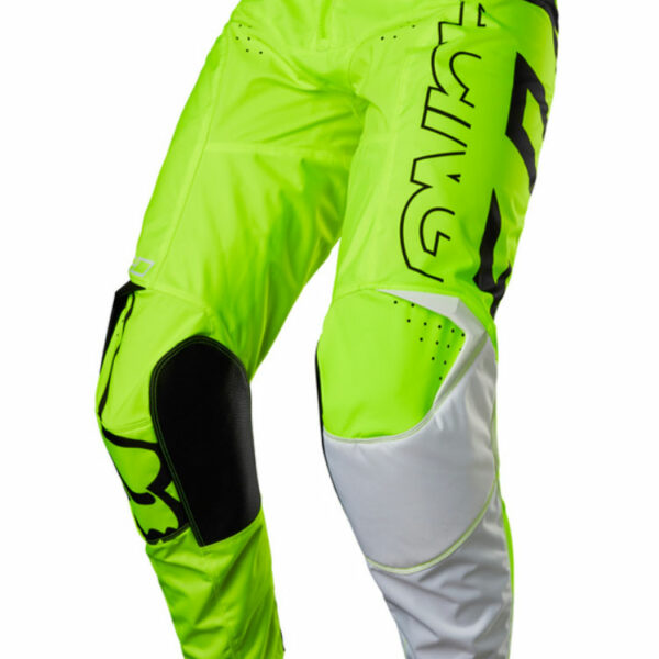 Fox 180 Skew to innowacyjne spodnie na crossa wykonane z elastycznej poliestrowej tkaniny TruMotion zapewniającej niezrównaną mobilność oraz komfort. Dodatkowe panele z barwionego, odpornego na wszelkiego rodzaju przetarcia i przebicia materiału 600D zwiększają trwałość spodni. Konstrukcja Rider Attack Position™ (RAP) ułatwia przyjęcie prawidłowej pozycji na motocyklu dzięki wstępnemu zakrzywieniu w obrębie kolan oraz idealnemu dopasowaniu do sylwetki. Dla zwiększenia ochrony w zestawie znajdują się również ochraniacze bioder. Po wewnętrznej stronie łydki zastosowano skórzane panele które mają na celu ochronić motocyklistę przed oparzeniami.