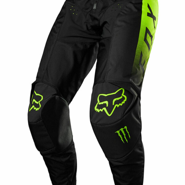 Fox 180 Monster to innowacyjne spodnie na crossa wykonane z elastycznej poliestrowej tkaniny TruMotion zapewniającej niezrównaną mobilność oraz komfort. Dodatkowe panele z barwionego, odpornego na wszelkiego rodzaju przetarcia i przebicia materiału 600D zwiększają trwałość spodni. Konstrukcja Rider Attack Position™ (RAP) ułatwia przyjęcie prawidłowej pozycji na motocyklu dzięki wstępnemu zakrzywieniu w obrębie kolan oraz idealnemu dopasowaniu do sylwetki. Dla zwiększenia ochrony w zestawie znajdują się również ochraniacze bioder. Po wewnętrznej stronie łydki zastosowano skórzane panele które mają na celu ochronić motocyklistę przed oparzeniami.