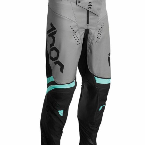 Spodnie cross Thor Pulse Cube wykonane są z wysokiej jakości materiałów zapewniających doskonałą mobilność oraz trwałość. Miejsca najbardziej narażone na zużycie wzmocnione zostały poliestrem 600D - materiałem o podwyższonej odporności na przetarcia. Wewnętrzna strona kolan zabezpieczona została licową skórą, która zapewnia optymalną przyczepność i trwałość. O solidnej konstrukcji spodni świadczą podwójne szwy na całej długości. Dzięki elastycznej tkaninie In-Motion możemy cieszyć się pełną swobodę ruchów. Spodnie wyposażone są w laserowo wycinane otwory wentylacyjne oraz meshowe panele na nogawkach, które gwarantują bardzo dobrą wymianę powietrza oraz efektywnie odprowadzają wilgoć. Proces ten wspomagany jest również przez oddychającą, wewnętrzną podszewkę. Idealne dopasowanie zapewnia podwójny system regulacji w pasie na rzep. Zaletą spodni są wyprofilowane kolana, które pozwalają przyjąć wygodną pozycję do jazdy. Spodnie cross kolorystycznie dopasowane są do dedykowanych bluz enduro z kolekcji Pulse.