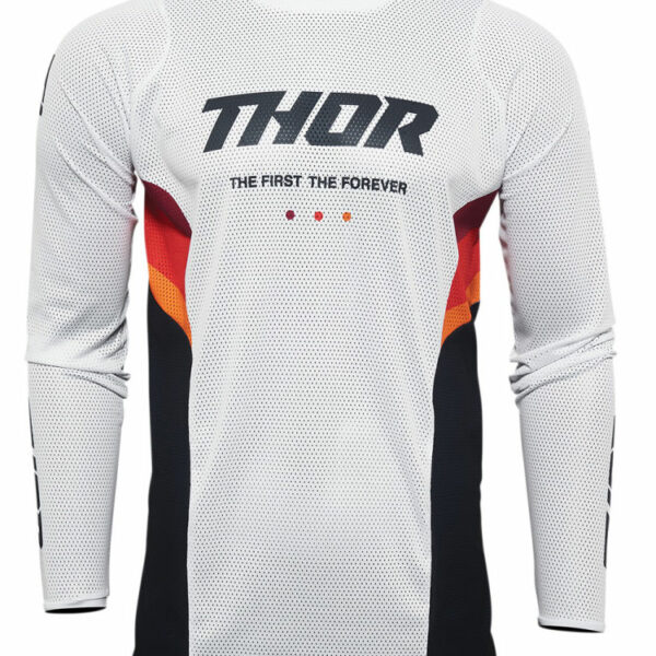 Bluza enduro Thor Pulse Air React to w pełni wentylowany model zapewniający maksymalny przepływ powietrza w najcieplejsze dni. Zastosowane materiały pomagają w odprowadzeniu wilgoci i nadmiaru ciepła pozostawiając suchy i przyjemny klimat przy skórze. Nowy, hybrydowy sposób wszycia rękawów zwiększa zakres ruchu, a tym samym komfort jazdy motocyklisty. Mankiety i kołnierz posiadają elastyczne panele, które zapewniają precyzyjne dopasowanie, bez podrażnienia skóry. Odpowiednia długość bluzy pozwala na jej schowanie do spodni, nie wysuwa się podczas ekstremalnej jazdy. Model ten kolorystycznie dopasowany jest do spodni Pulse Air.