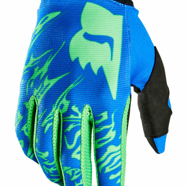 Fox 180 Peril to lekkie rękawice enduro zapewniające pełną kontrolę podczas jazdy na torze lub trudnym terenie. Wyściełane są jednowarstwową powierzchnią miękkiego i wydajnego materiału Clarino dzięki czemu gwarantują doskonałe wyczucie manetek oraz komfort. Ponadto umożliwia korzystanie z ekranów dotykowych bez konieczności zdejmowania rękawicy. Wierzchnia część wykonana jest z wytrzymałej, odpornej na przetarcia nylonowej tkaniny z sublimowaną, długotrwałą grafiką. Rozciągliwe panele z siatki umieszczone między palcami umożliwiają pełną swobodę ruchu zwiększając jednocześnie przepływ powietrza. Formowane kompresyjnie neoprenowe mankiety wyposażone zostały w rzep który zapobiega ześlizgnięciu się rękawicy z dłoni. Silikonowy nadruk na opuszkach palców zapewnia pewny chwyt.
