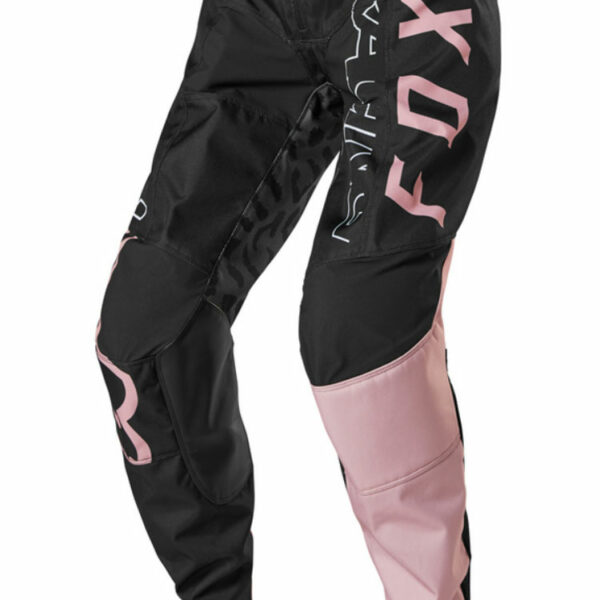 Fox 180 Skew to innowacyjne spodnie na crossa wykonane z elastycznej poliestrowej tkaniny TruMotion zapewniającej niezrównaną mobilność oraz komfort. Dodatkowe panele z barwionego, odpornego na wszelkiego rodzaju przetarcia i przebicia materiału 600D zwiększają trwałość spodni. Konstrukcja Rider Attack Position™ (RAP) ułatwia przyjęcie prawidłowej pozycji na motocyklu dzięki wstępnemu zakrzywieniu w obrębie kolan oraz idealnemu dopasowaniu do sylwetki. Dla zwiększenia ochrony w zestawie znajdują się również ochraniacze bioder. Po wewnętrznej stronie łydki zastosowano skórzane panele które mają na celu ochronić motocyklistę przed oparzeniami.