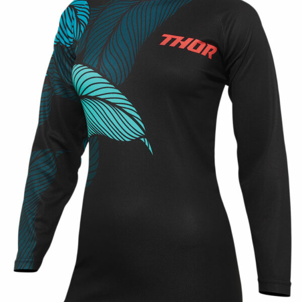 Thor Sector Urth to skrojona na miarę dla idealnego dopasowania i codziennego komfortu bluza enduro damska. Niezwykle wygodna i zapewniająca maksymalną swobodę ruchu dzięki hybrydowemu wszyciu rękawów. Zastosowany materiał bardzo dobrze odprowadza wilgoć gwarantując przyjemną i suchą jazdę. O komfort dbają elastyczne wykończenia na mankietach i kołnierzu, które idealnie przylegają do ciała, nie podrażniając skóry. Model Sector posiada dłuższy tył, który umożliwia swobodne schowanie bluzy do spodni, które utrzymują ją wewnątrz nawet podczas ekstremalnej jazdy. Grafika na bluzie odporna jest na działanie promieni słonecznych i pranie, dzięki czemu zachowuje swój świeży wygląd przez długi czas. Bluza występuje w dwóch wersjach kolorystycznych czarnym i szarym, które doskonale komponują się ze spodniami Sector Urth.