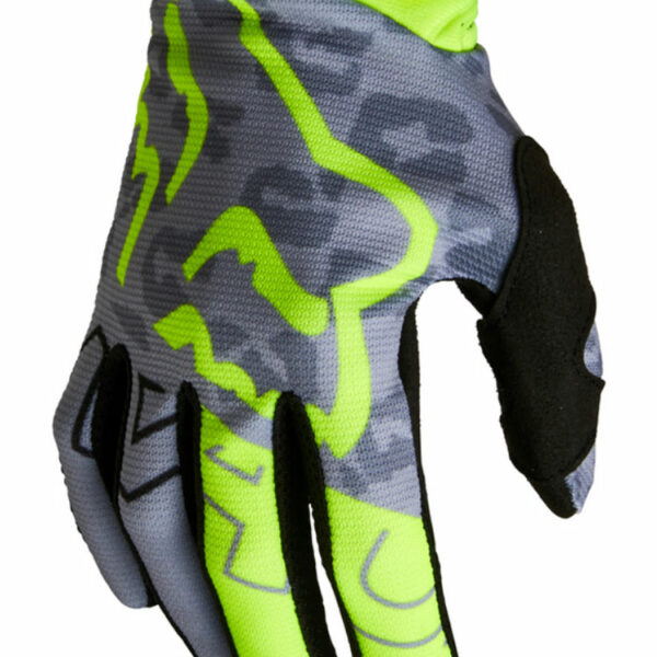 Fox 180 Skew to lekkie rękawice enduro zapewniające pełną kontrolę podczas jazdy na torze lub trudnym terenie. Wyściełane są jednowarstwową powierzchnią miękkiego i wydajnego materiału Clarino dzięki czemu gwarantują doskonałe wyczucie manetek oraz komfort. Ponadto umożliwia korzystanie z ekranów dotykowych bez konieczności zdejmowania rękawicy. Wierzchnia część wykonana jest z wytrzymałej, odpornej na przetarcia nylonowej tkaniny z sublimowaną, długotrwałą grafiką. Rozciągliwe panele z siatki umieszczone między palcami umożliwiają pełną swobodę ruchu zwiększając jednocześnie przepływ powietrza. Formowane kompresyjnie neoprenowe mankiety wyposażone zostały w rzep który zapobiega ześlizgnięciu się rękawicy z dłoni. Silikonowy nadruk na opuszkach palców zapewnia pewny chwyt.